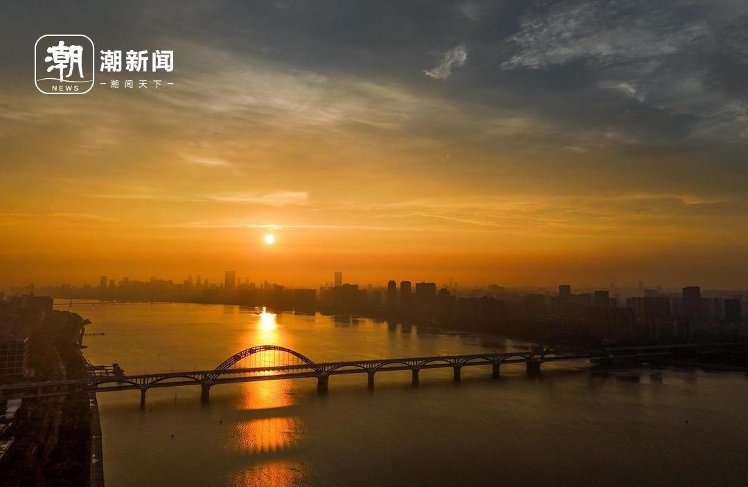 杭州錢(qián)塘江畔,一輪紅日噴薄而出,映紅了江面 記者 董旭明 攝