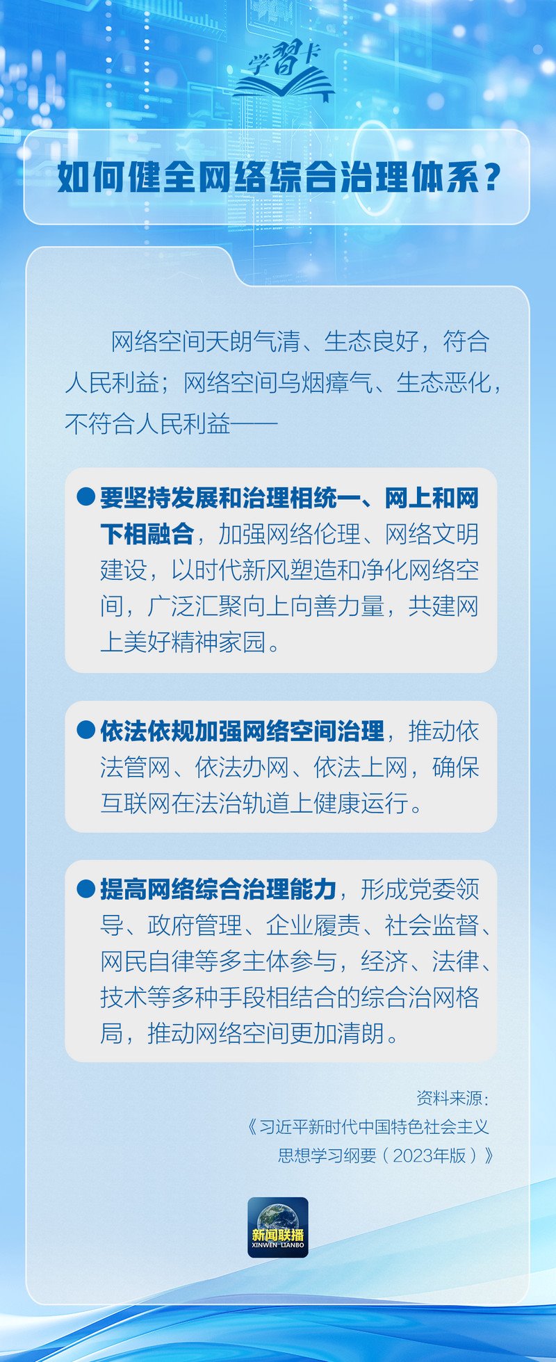 習近平總書記在《關于〈中共中央關于進一步全面深化改革、推進中國式現(xiàn)代化的決定〉的說明》中強調(diào)要健全網(wǎng)絡綜合治理體系。