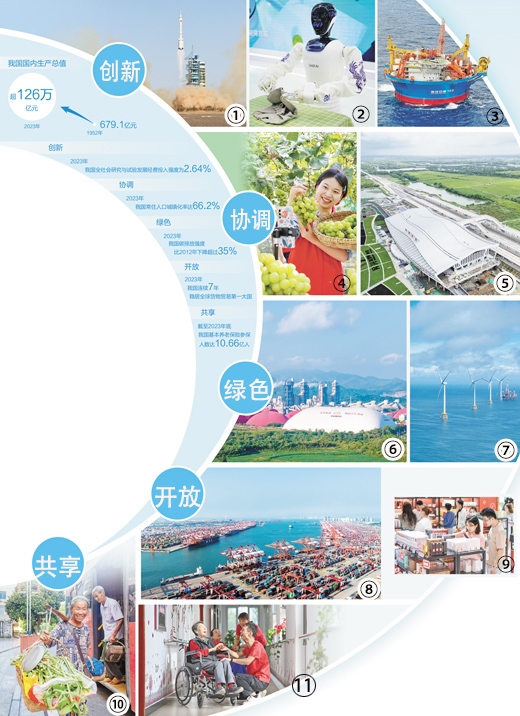 創(chuàng)新、協(xié)調(diào)、綠色、開放、共享,在中國的發(fā)展版圖上奏響精彩樂章,激蕩出更加美好的未來。