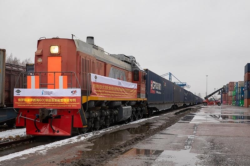 △2021年3月,由中國成都首發(fā)至俄羅斯圣彼得堡市的中歐班列抵達圣彼得堡舒沙雷火車站。