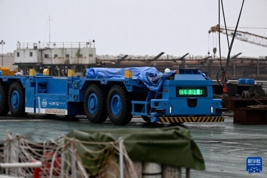 6月27日,岸邊集裝箱起重機(jī)和軌道吊運(yùn)抵秘魯錢凱港。 新華社發(fā)(上海振華重工供圖)