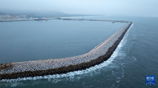 由中企控股和投資開(kāi)發(fā)的錢凱港位于秘魯首都利馬以北的錢凱灣內(nèi)。從空中俯瞰,約2.6公里長(zhǎng)的防波堤像巨臂一般環(huán)抱住碼頭設(shè)施,以阻擋太平洋海浪的侵蝕。