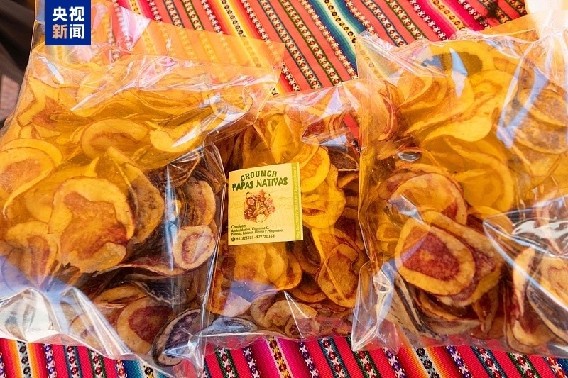 △今年5月30日,秘魯慶祝首個“國際馬鈴薯日”。當地一個街頭市場上,展示著用馬鈴薯制成的薯片。