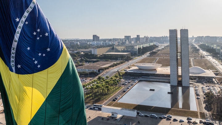 這是2024年7月16日在巴西首都巴西利亞拍攝的國(guó)會(huì)大廈(無(wú)人機(jī)照片)。新華社記者 王天聰 攝
