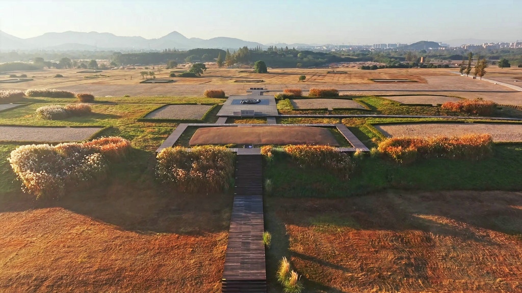 深秋的良渚,稻浪翻滾,蘆花婆娑。
