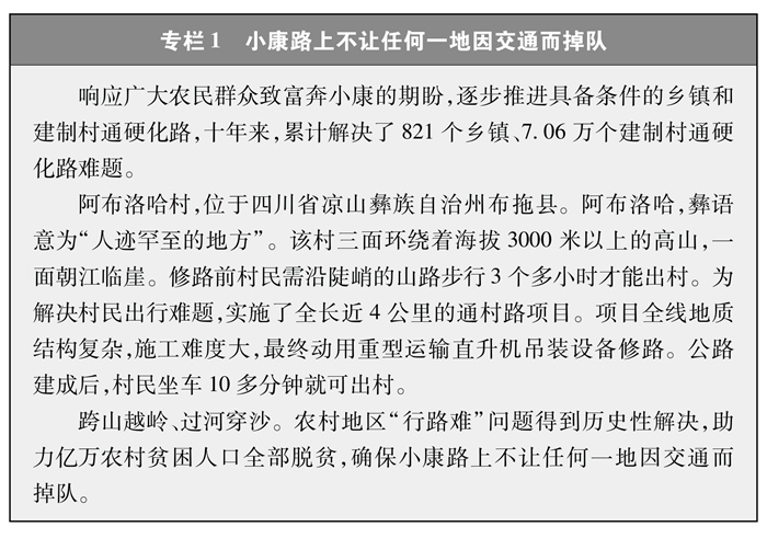 解決特殊地區(qū)出行難題。改一條溜索、修一段公路就能給群眾打開(kāi)一扇脫貧致富的大門(mén)。為了保障偏遠(yuǎn)山區(qū)百姓安全出行,推動(dòng)“溜索改橋”建設(shè),專(zhuān)項(xiàng)資金支持、精心組織實(shí)施,用3年時(shí)間徹底改善了溜索地區(qū)出行條件(專(zhuān)欄3)。推進(jìn)“直過(guò)民族”③和人口較少民族聚居區(qū)農(nóng)村公路建設(shè),解決民族地區(qū)交通閉塞的突出問(wèn)題,加快民族地區(qū)脫貧致富步伐。