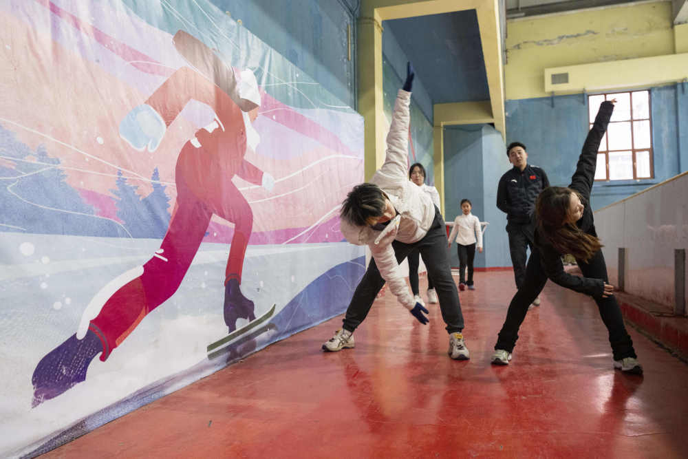 2023年3月14日,一名中學(xué)體育老師在河北張家口冰之夢滑冰場指導(dǎo)學(xué)生。在張家口這座“冬奧之城”,市民百姓參加冰雪運(yùn)動已經(jīng)蔚然成風(fēng),“全季全體育”理念發(fā)展成為城市新名片。