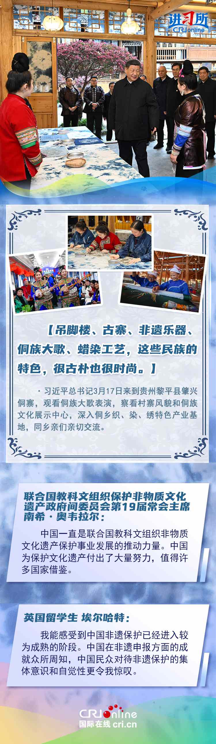 習(xí)近平總書記近日赴貴州、云南考察。他走進(jìn)民族特色村寨、歷史文化古城,心系歷史文化遺產(chǎn)保護(hù)和文旅融合發(fā)展。習(xí)近平特別叮囑當(dāng)?shù)毓賳T和群眾,既要保護(hù)有形的村落、民居、特色建筑風(fēng)貌,傳承無(wú)形的非物質(zhì)文化遺產(chǎn),又要推動(dòng)其創(chuàng)造性轉(zhuǎn)化、創(chuàng)新性發(fā)展。