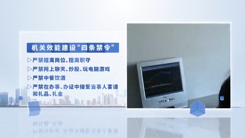 作為機(jī)關(guān)效能建設(shè)的重要抓手,這一年,浙江出臺(tái)機(jī)關(guān)效能建設(shè)“四條禁令”,嚴(yán)查上班遲到、辦公室炒股玩游戲、中餐飲酒、辦事吃拿卡要等群眾反映最強(qiáng)烈最突出的問(wèn)題。