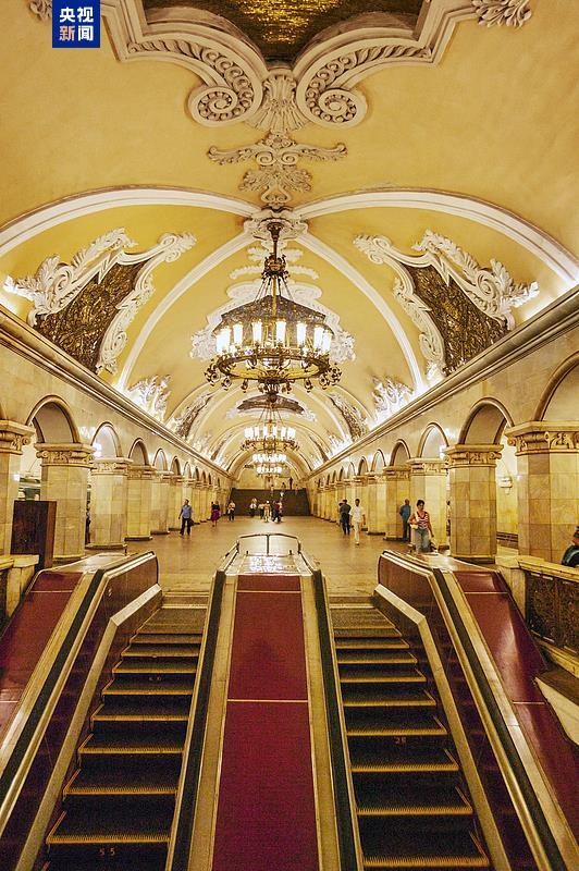 △莫斯科地鐵米丘林大街站由中企中標(biāo)建設(shè),地鐵站有紅色立柱、團(tuán)壽紋、祥云等中國(guó)元素裝飾。