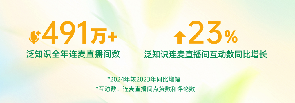 隨著用戶(hù)互動(dòng)與創(chuàng)作者投稿形成正向循環(huán),推動(dòng)生態(tài)雙向繁榮,連麥學(xué)習(xí)正重塑知識(shí)普惠的全新范式。數(shù)據(jù)顯示,2024年,快手泛知識(shí)連麥直播場(chǎng)次達(dá)491萬(wàn)場(chǎng),直播間互動(dòng)量同比提升23%,健康咨詢(xún)、教育助學(xué)、法律咨詢(xún)位列連麥內(nèi)容前三?! ?/p>