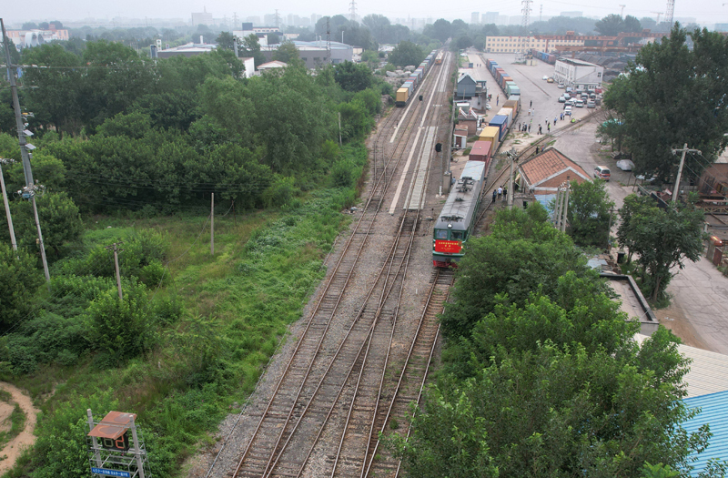 6月30日,北京至阿塞拜疆巴庫的跨里海中歐班列停靠在位于北京市房山區(qū)的北京國際陸港等待發(fā)車(無人機(jī)照片)。