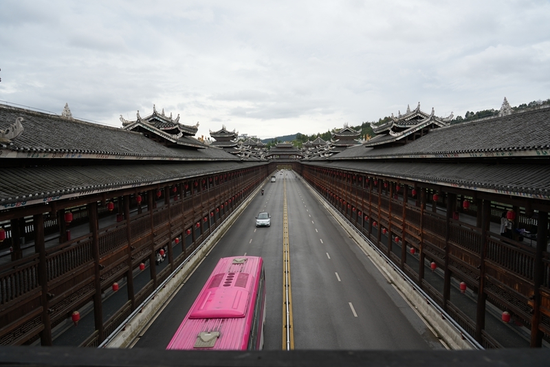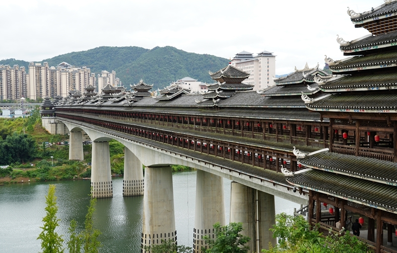 這是9月25日拍攝的三江侗族自治縣的程陽永濟(jì)橋。該橋建成于1924年,整座橋梁搭建時不用一釘一鉚,主要由木料和石料建成,橋長近80米,寬近4米,高近12米,是我國建筑藝術(shù)中的珍品。