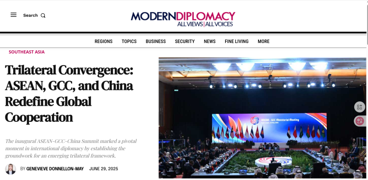 6月29日,歐洲《現(xiàn)代外交》網(wǎng)站刊發(fā)評論文章《三方協(xié)同:東盟、海合會與中國重新定義全球合作》。文章從不久前圓滿閉幕的首屆東盟—中國—海合會峰會出發(fā),指出東盟、海合會與中國之間的三方合作對推動世界多極化、促進全球南方國家發(fā)展具有重要意義,中國作為負(fù)責(zé)任大國在全球治理中發(fā)揮了關(guān)鍵領(lǐng)導(dǎo)作用。