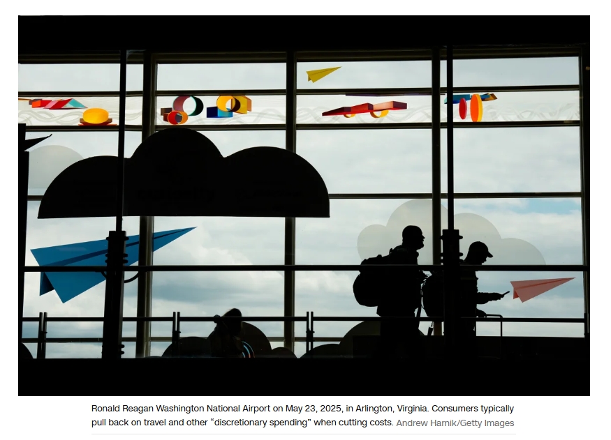 對于像威爾伯恩這樣的家庭來說,春季的瘋狂消費是對抗不確定性的“豪賭”,可能需要多年的精打細算來償還債務。如今背負新債的美國人正縮減消費,尤其是餐飲、旅行等非必需支出。美國金融服務網(wǎng)站銀率網(wǎng)(Bankrate)的調(diào)查顯示,54%的美國成年人計劃減少此類消費,高于去年的49%。商務部數(shù)據(jù)也印證了這一情況,五月份餐館和酒吧的零售支出下降了0.9%,這是自二月以來的首次月度下降,也是自2023年2月以來的最大降幅。
