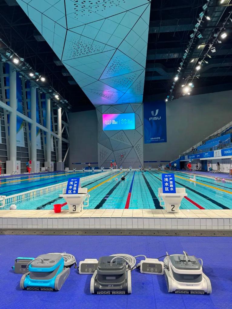 13日,世運(yùn)會皮艇球項(xiàng)目在簡陽文體中心游泳館開賽,與運(yùn)動員們一同出現(xiàn)在泳池里的還有幾位特殊的“清潔工”。據(jù)場館工作人員介紹,賽事期間場館投入了泳池清潔機(jī)器人設(shè)備,完成對泳池的日常維護(hù)及清潔任務(wù)。