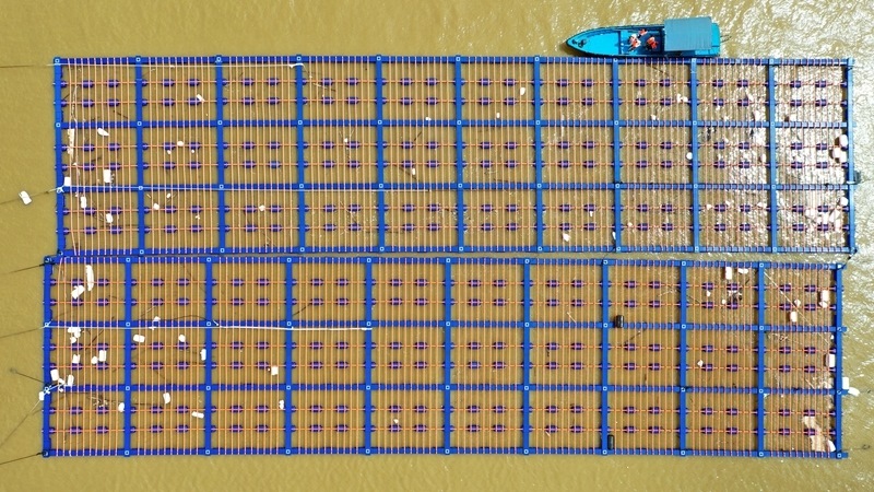 10月7日,一艘修補(bǔ)船開(kāi)往茅尾海修補(bǔ)受損蠔排。