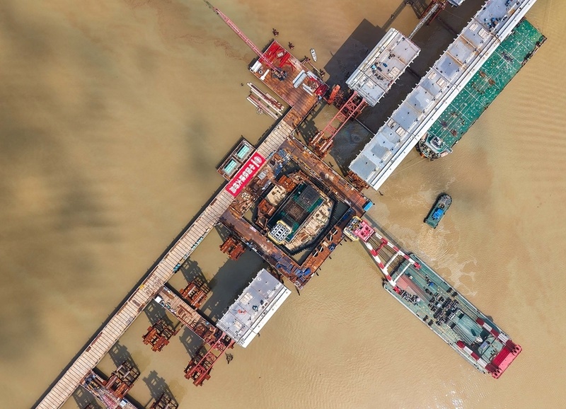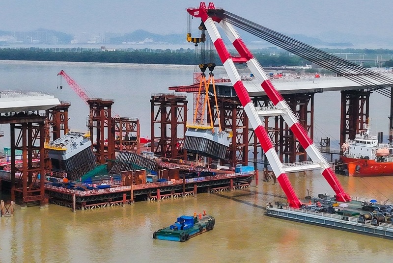 10月10日,由中鐵建大橋局承建的萬龍大橋吊裝架設首節(jié)段主塔。位于廣州南沙區(qū)的萬龍大橋跨越珠江口龍穴南水道,全長5146米,主橋長1150米,主跨608米,為粵港澳大灣區(qū)又一世界級橋梁。