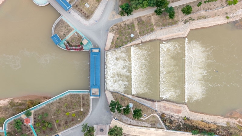這是10月16日在內(nèi)蒙古巴彥淖爾市臨河區(qū)境內(nèi)拍攝的一處分水樞紐,用于灌溉的黃河水通過(guò)多級(jí)樞紐層層分水最終進(jìn)入農(nóng)田(無(wú)人機(jī)照片)。