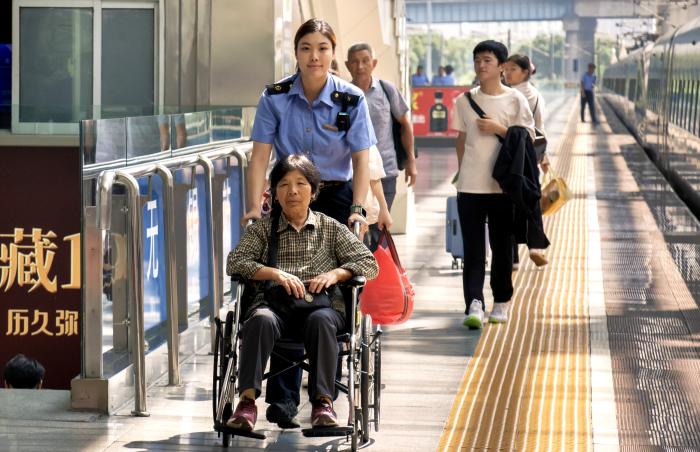 無錫站"太湖明珠"雷鋒服務站工作人員為重點旅客出行提供幫扶。張博倫 攝