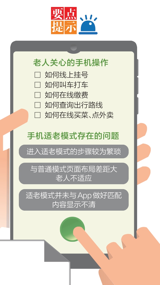 令記者沒想到的是,有些老人對于適老模式并不很適應(yīng),究其原因,還是因為老人已經(jīng)習(xí)慣了之前的普通模式,想要一下子轉(zhuǎn)變存在一定困難。如果在老人拿到手機(jī)之時,就能自動選擇是否進(jìn)入適老模式,從一開始就讓老人適應(yīng)適老模式的操作、布局,效果可能會好很多。