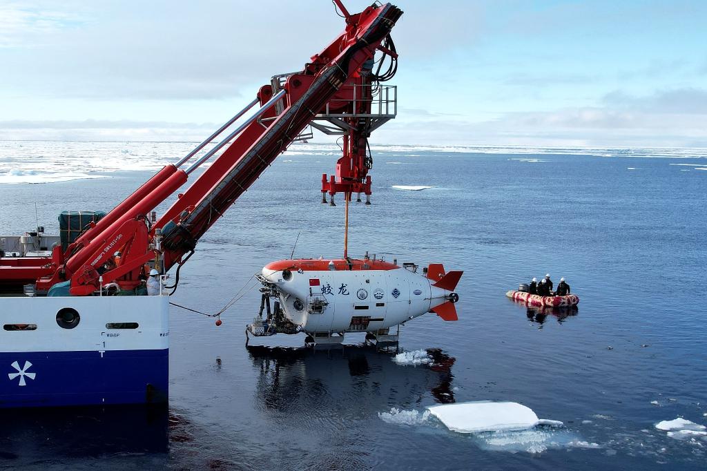 搭載著“奮斗者”號(hào)載人深潛科考隊(duì)的“探索三號(hào)”于今年7月22日從三亞出發(fā),會(huì)同“蛟龍”號(hào)載人深潛團(tuán)隊(duì)赴北冰洋海域執(zhí)行深潛任務(wù)。其間,科考隊(duì)在北冰洋作業(yè)56天,進(jìn)行了一系列科學(xué)考察和試驗(yàn)。在海冰覆蓋率大于80%的北冰洋中央海盆,科考隊(duì)進(jìn)行了國(guó)際上首次加克洋中脊的載人深潛科考,最大下潛深度達(dá)5277米。