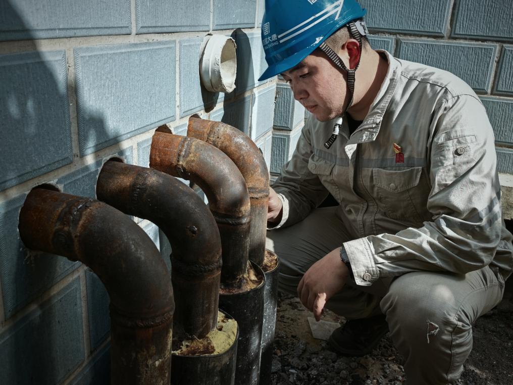 圖為遼寧大唐國際沈撫熱力有限責任公司的工作人員正在檢修設(shè)備。(受訪者供圖)