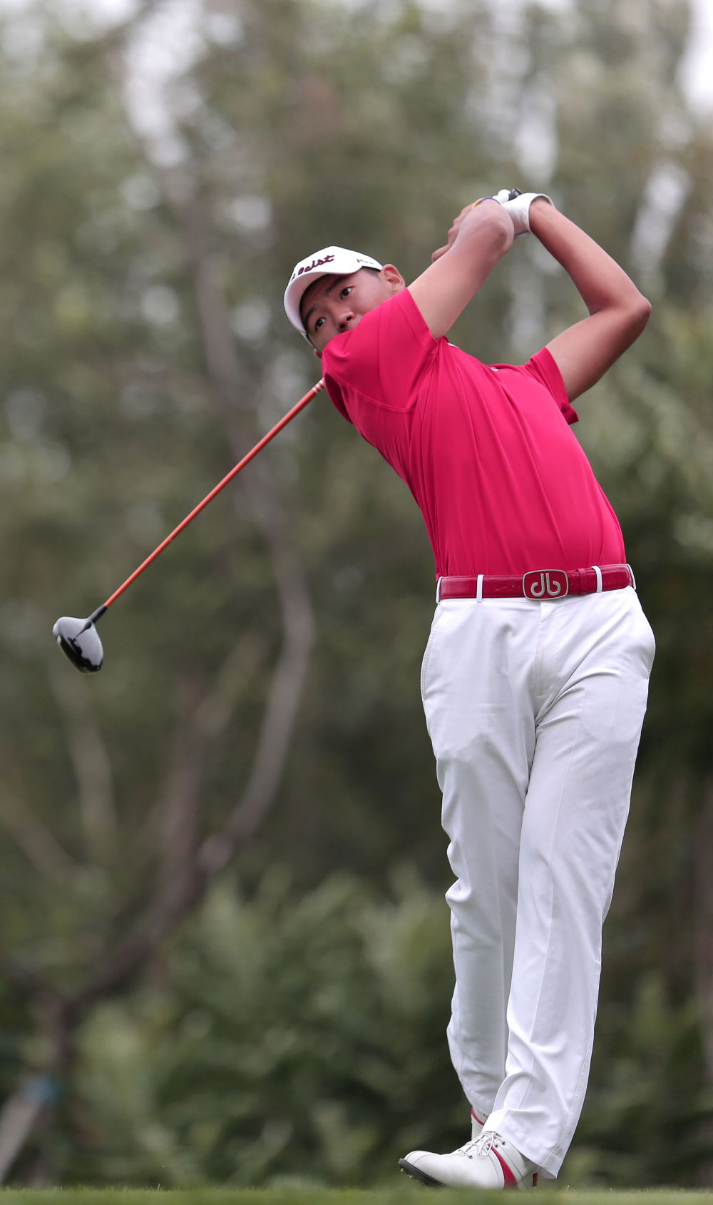 2013年9月9日,香港隊選手黑純一在比賽中。當(dāng)日,在遼寧省沈陽市進行的第十二屆全運會高爾夫球男子團體比賽中,香港隊最終以851桿的總成績奪得亞軍。新華社記者姚劍鋒攝