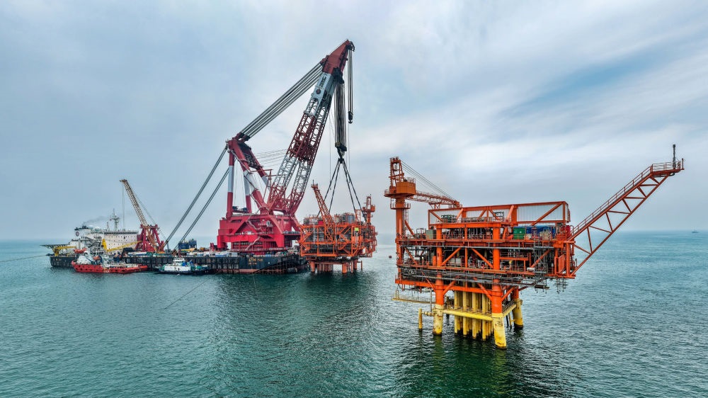 9月8日,墾利6-1油田10-1北區(qū)塊Ⅱ期開發(fā)項目油氣平臺在渤海海域完成海上安裝(無人機照片)。新華社發(fā)(杜鵬輝 攝)