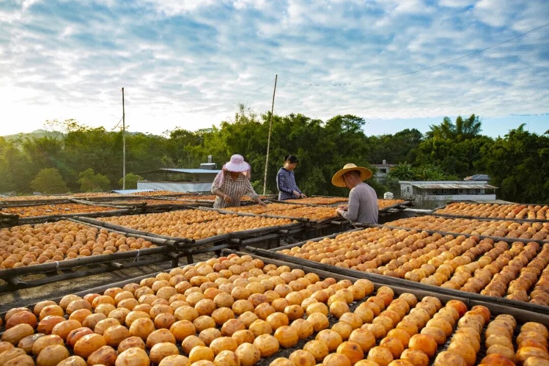 在廣東省梅州市平遠(yuǎn)縣石正鎮(zhèn)中東村,村民正趁晴好天氣曬制柿餅。平遠(yuǎn)縣供銷(xiāo)總公司通過(guò)合作社與農(nóng)戶(hù)簽訂收購(gòu)合約,使石正柿花成為當(dāng)?shù)剞r(nóng)民增收致富的特色產(chǎn)業(yè)。馮錫權(quán)攝(影像中國(guó))