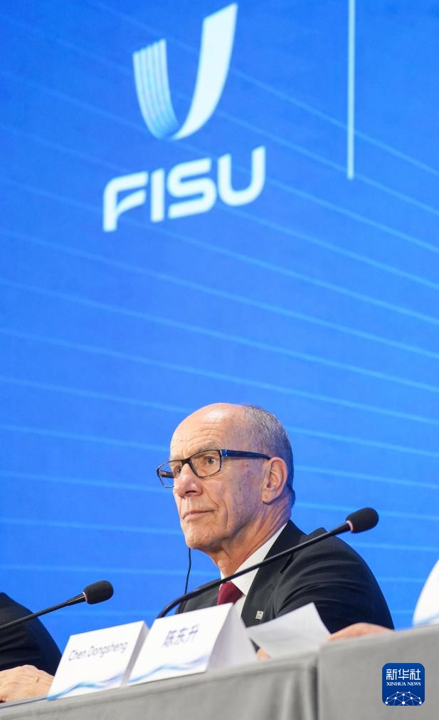 11月26日,國際大學(xué)生體育聯(lián)合會(huì)主席雷諾·艾德在新聞發(fā)布會(huì)上。新華社記者 許暢 攝