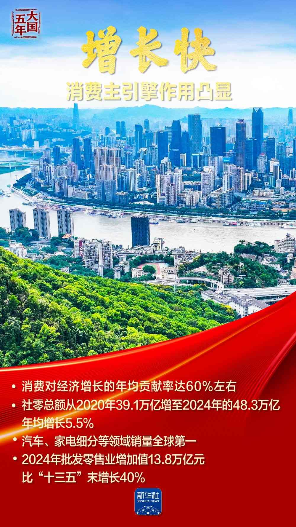 這五年,“智能”“綠色”煥新潮涌,國風(fēng)文創(chuàng)、數(shù)字消費(fèi)勾勒品質(zhì)生活新圖景;服務(wù)消費(fèi)快速增長(zhǎng)折射結(jié)構(gòu)優(yōu)化;“中國機(jī)遇”惠及世界,“中國市場(chǎng)”成為共享市場(chǎng)。跟隨海報(bào),共同見證超大規(guī)模市場(chǎng)蘊(yùn)藏的磅礴底氣,感受提振內(nèi)需釋放的澎湃動(dòng)力。