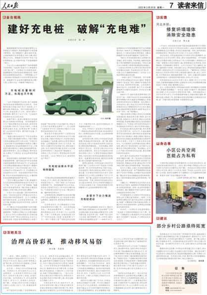 今年3月20日,《人民日?qǐng)?bào)》讀者來信版“金臺(tái)視線”欄目《建好充電樁 破解“充電難”》一文,在消費(fèi)者個(gè)人安裝新能源汽車充電樁方面,關(guān)注了多位“人民投訴”平臺(tái)用戶吐槽“物業(yè)不配合業(yè)主安裝充電樁以及個(gè)人充電樁的維護(hù)管理不到位”等問題。
