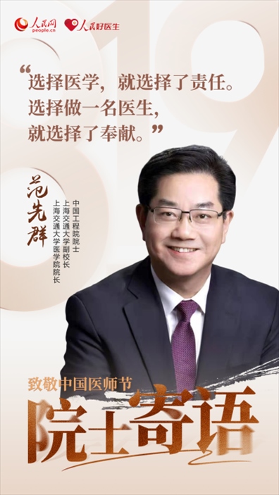 2023年8月19日是第六個中國醫(yī)師節(jié),今年醫(yī)師節(jié)的主題是“勇?lián)】凳姑?,鑄就時代新功”,大力弘揚醫(yī)務(wù)工作者的崇高精神。值此之際,人民網(wǎng)、人民好醫(yī)生客戶端邀請中國工程院和中國科學(xué)院7位院士,為廣大醫(yī)務(wù)工作者們送上殷切的節(jié)日囑托。