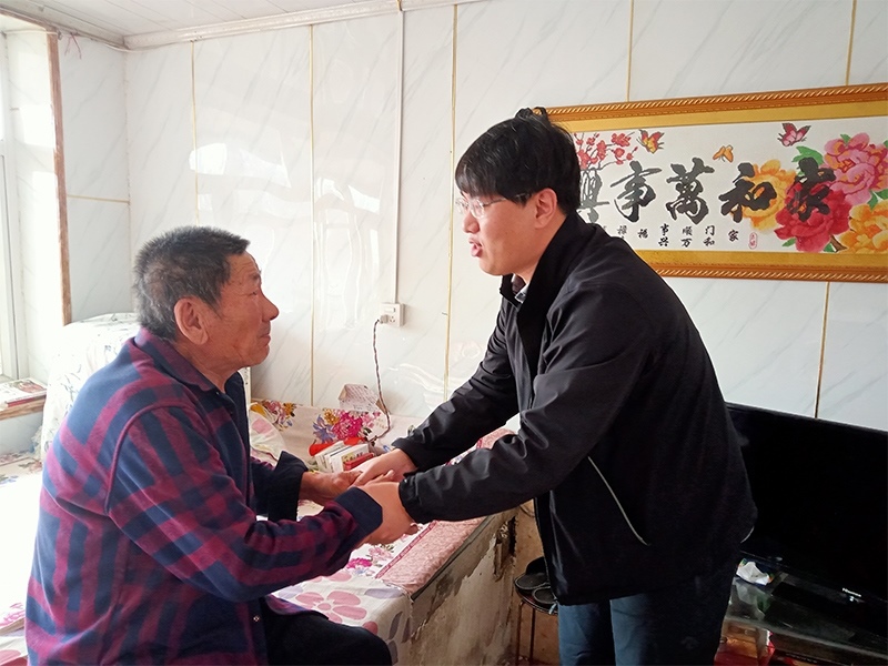 圖為駐村第一書(shū)記王寒到五保戶家中發(fā)放合作社收益資金醫(yī)療保險(xiǎn)補(bǔ)貼。校方供圖