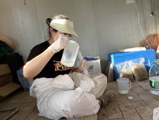 2022年7月,2022級碩士研究生張千子協(xié)助同學(xué)楊順然在科技小院進(jìn)行采樣工作。圖片由受訪者提供