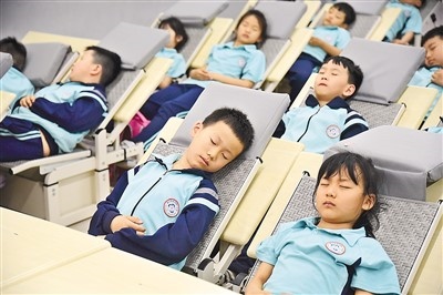 近年來(lái),河北省邯鄲市復(fù)興區(qū)先后投入360余萬(wàn)元,購(gòu)置躺式桌椅、固定床、折疊床、睡墊,解決孩子餐后睡眠的難題。圖為5月29日,在復(fù)興區(qū)百花第二小學(xué),學(xué)生們使用“躺式課桌椅”午休。 郝群英攝(人民視覺(jué))