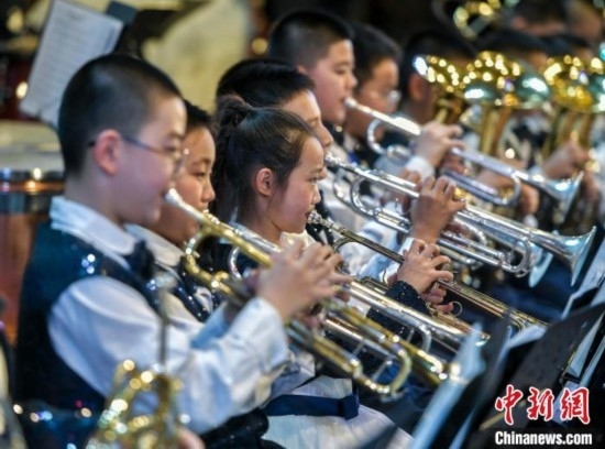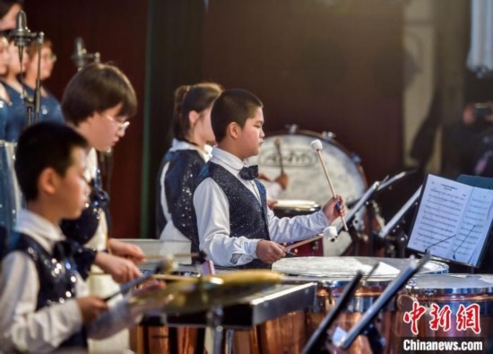 該交響管樂(lè)團(tuán)成立于2014年,平均年齡10歲,是一支非常年輕有朝氣的隊(duì)伍。中新網(wǎng)記者 劉新 攝
