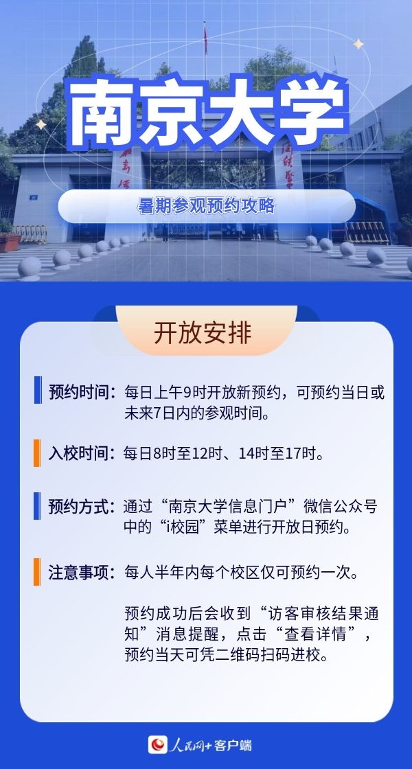 人民網(wǎng)北京7月19日電 暑假來臨,帶孩子參觀高校,感受學校人文歷史底蘊以及濃厚的學術氛圍,已經(jīng)成為很多家長的選擇。近日,全國多所高校開放校園,接受公眾參觀。那么如何預約進校?有什么注意事項?人民網(wǎng)特別整理了部分高校的參觀預約攻略,一起來看。(郝孟佳、實習生趙雪祺)