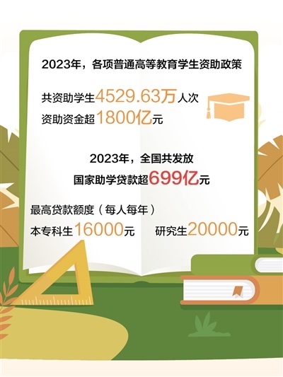 《2023年中國學(xué)生資助發(fā)展報告》顯示,2023年,政府、高校及社會的各項普通高等教育學(xué)生資助政策共資助學(xué)生4529.63萬人次,資助資金1854.38億元。