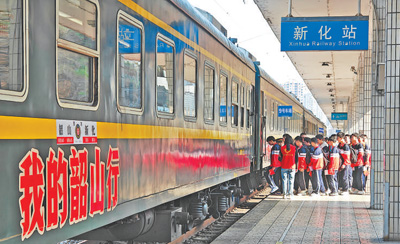 伴著汽笛長鳴,一列紅色研學(xué)專列駛進韶山站。這是中國鐵路廣州局集團有限公司推出的“我的韶山行”紅色研學(xué)專列。車廂內(nèi),“乘風(fēng)破萬卷,追風(fēng)正少年”標語引人注目。打造“書香列車”主題車廂,在餐車設(shè)立“書香驛站”,將吧臺改造成“陽光書社”,設(shè)計留言帖、主題打卡點,發(fā)放文創(chuàng)紀念票卡……列車寓學(xué)于途,開設(shè)韶山站現(xiàn)場教學(xué)點,打造火車上的流動課堂。