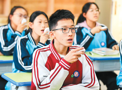 昆都侖區(qū)一所中學(xué)的學(xué)生使用英語聽說學(xué)習(xí)平臺進(jìn)行練習(xí)。