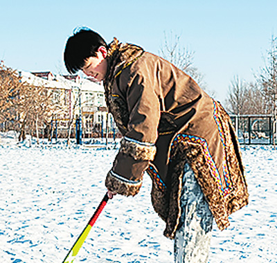 寒假期間,每當(dāng)夕陽(yáng)的余暉染紅了大地,達(dá)斡爾族人迎新春最傳統(tǒng)的運(yùn)動(dòng)項(xiàng)目——打火球就要拉開(kāi)序幕。打火球的比賽規(guī)則簡(jiǎn)單而有趣,通常選擇平坦的草地或村中開(kāi)闊的街道作為場(chǎng)地,兩端各設(shè)一個(gè)球門,兩隊(duì)人數(shù)相等即可,以進(jìn)球多者為勝。盡管開(kāi)始時(shí)我屢屢失誤,但在長(zhǎng)輩們的鼓勵(lì)和指導(dǎo)下,我逐漸掌握了技巧,每一次成功擊打都讓我興奮不已。