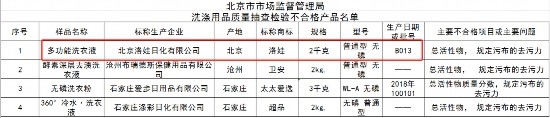 公告顯示,北京市市場(chǎng)監(jiān)督管理局2020年6月24日公示的洗滌用品質(zhì)量抽檢信息中,標(biāo)稱(chēng)生產(chǎn)企業(yè)“北京市洛娃日化有限公司”,標(biāo)稱(chēng)商標(biāo)“洛娃”,規(guī)格“2千克”,型號(hào)“普通型無(wú)磷”,生產(chǎn)日期或批號(hào)“B013”的多功能洗衣液,不合格項(xiàng)目“總活性物,規(guī)定污布的去污力”。該產(chǎn)品被抽檢場(chǎng)所為“密云縣密云鎮(zhèn)億源來(lái)商店”,現(xiàn)“北京市洛娃日化有限公司”聲稱(chēng)該產(chǎn)品為假冒其注冊(cè)商標(biāo)及廠名、廠址的產(chǎn)品。