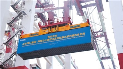 山東省港口集團·海陸馬士基亞洲孟加拉直達航線首航青島港現(xiàn)場。資料圖片