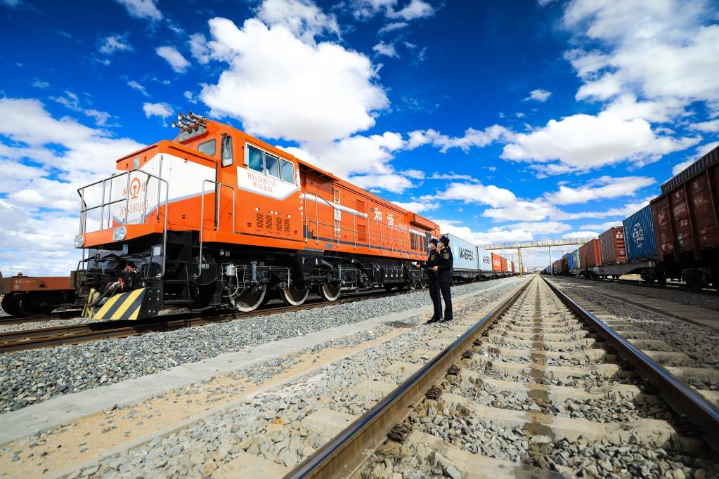 在二連浩特鐵路口岸,二連海關(guān)關(guān)員現(xiàn)場(chǎng)核對(duì)出境中歐班列車(chē)輛及集裝箱信息。(受訪者供圖)