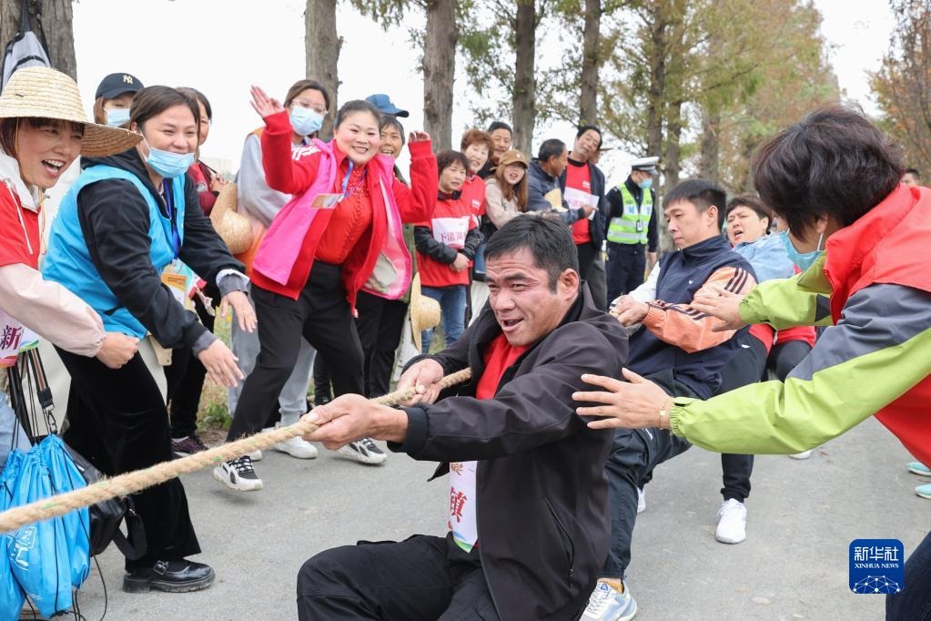 11月15日,在德清縣舉辦的美好家園運動會暨新安鎮(zhèn)稻田爭霸賽上,村民參加拔河比賽。新華社發(fā)(姚海翔 攝)