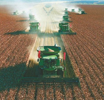 大型農機在黑龍江省北大荒集團九三分公司鶴山農場高粱基地作業(yè)。 任寶吉攝