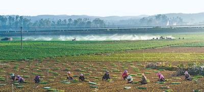 云南省硯山縣平遠鎮(zhèn)農民在移栽冬季輪作蔬菜。 王國禮攝