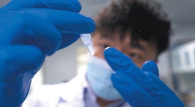 天津細(xì)胞生態(tài)海河實(shí)驗(yàn)室科研人員在觀察提取細(xì)胞遺傳物質(zhì)。 何美瞳攝